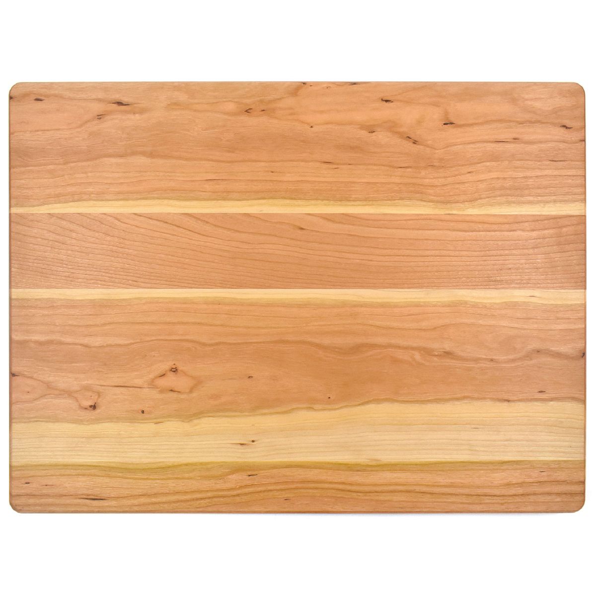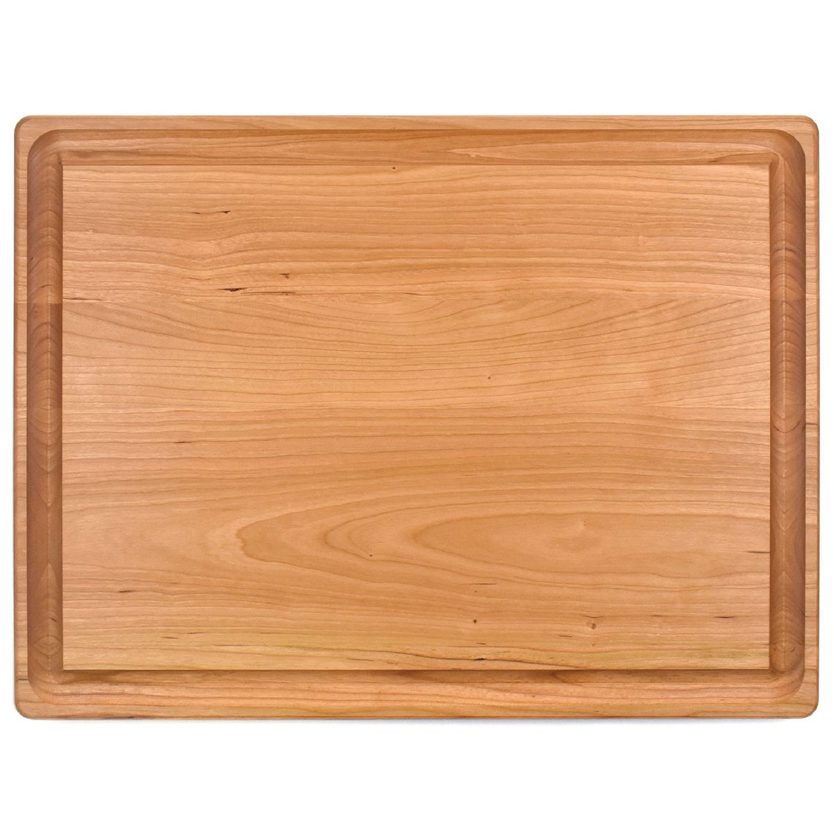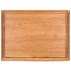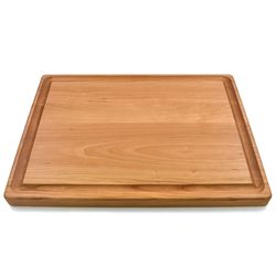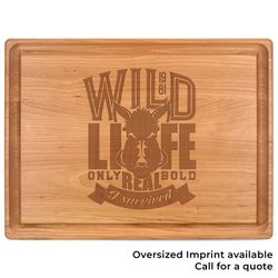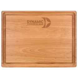 This natural 15" x 20" x 1 1/4" cherry rectangular butcher block is great for chopping and serving small items. These are perfect boards for engraving and make for perfect corporate gifts and promotional products. This also makes great housewarming gifts from realtors. The board is also equipped with a juice groove to stop messes from leaking onto countertops or tables. Oversized imprint is available.