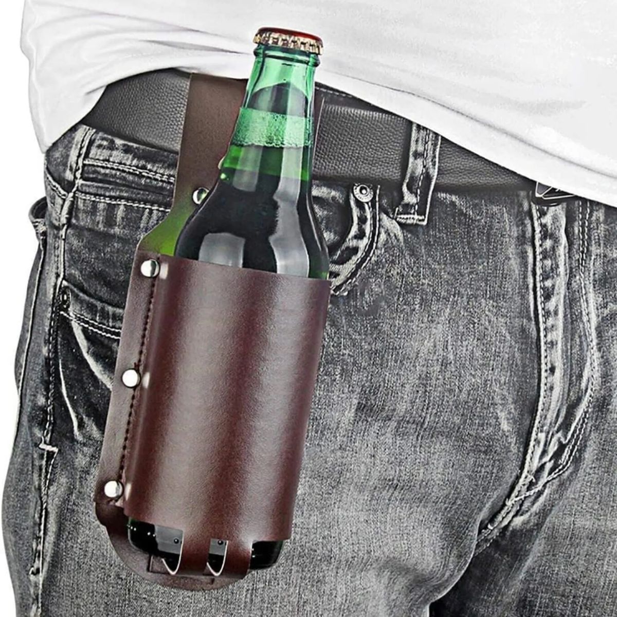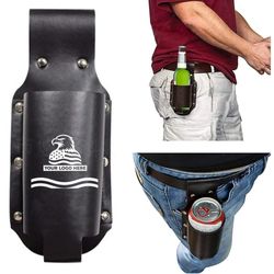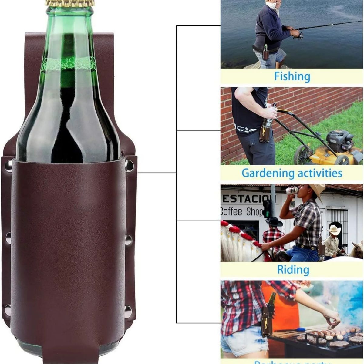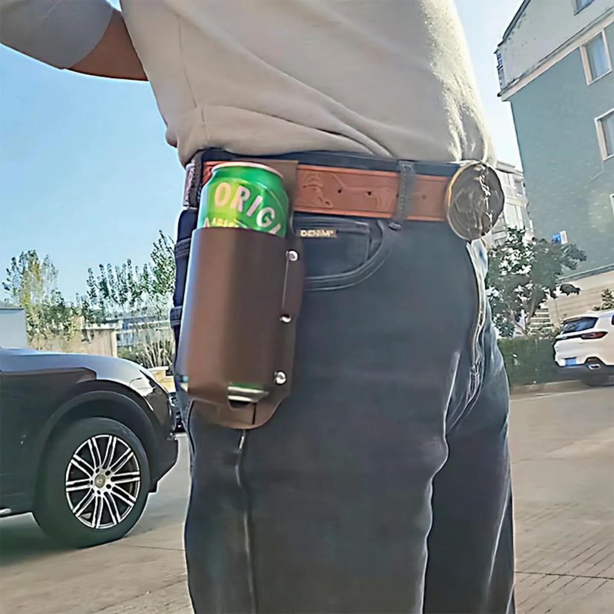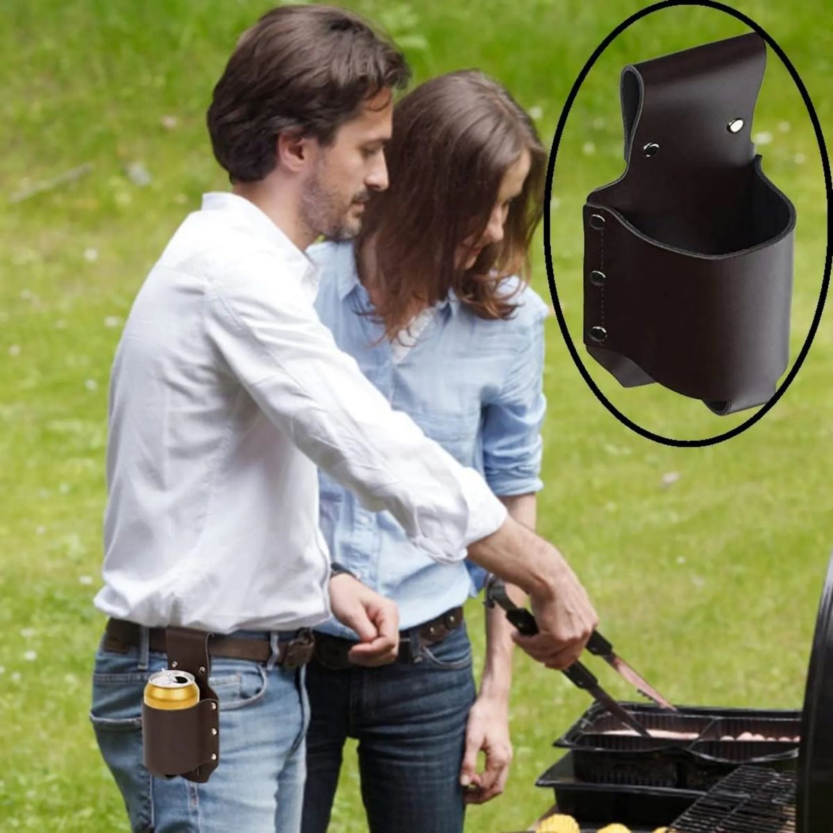 Enjoy hands free convenience with this portable PU leather beer holster. Made from durable waterproof PU leather, it offers a soft touch feel while securely holding your drink at your side. Keep your beverage cool and your hands free at parties, barbecues, picnics, hikes, camping trips, beach days, and outdoor events. Ideal for beer bottles, soda cans, or water bottles. A unique and fun gift for men who love outdoor gatherings or home DIY projects. Comfortable to wear and easy to clean, this holder fits most standard belts for quick access to your favorite drink anytime.