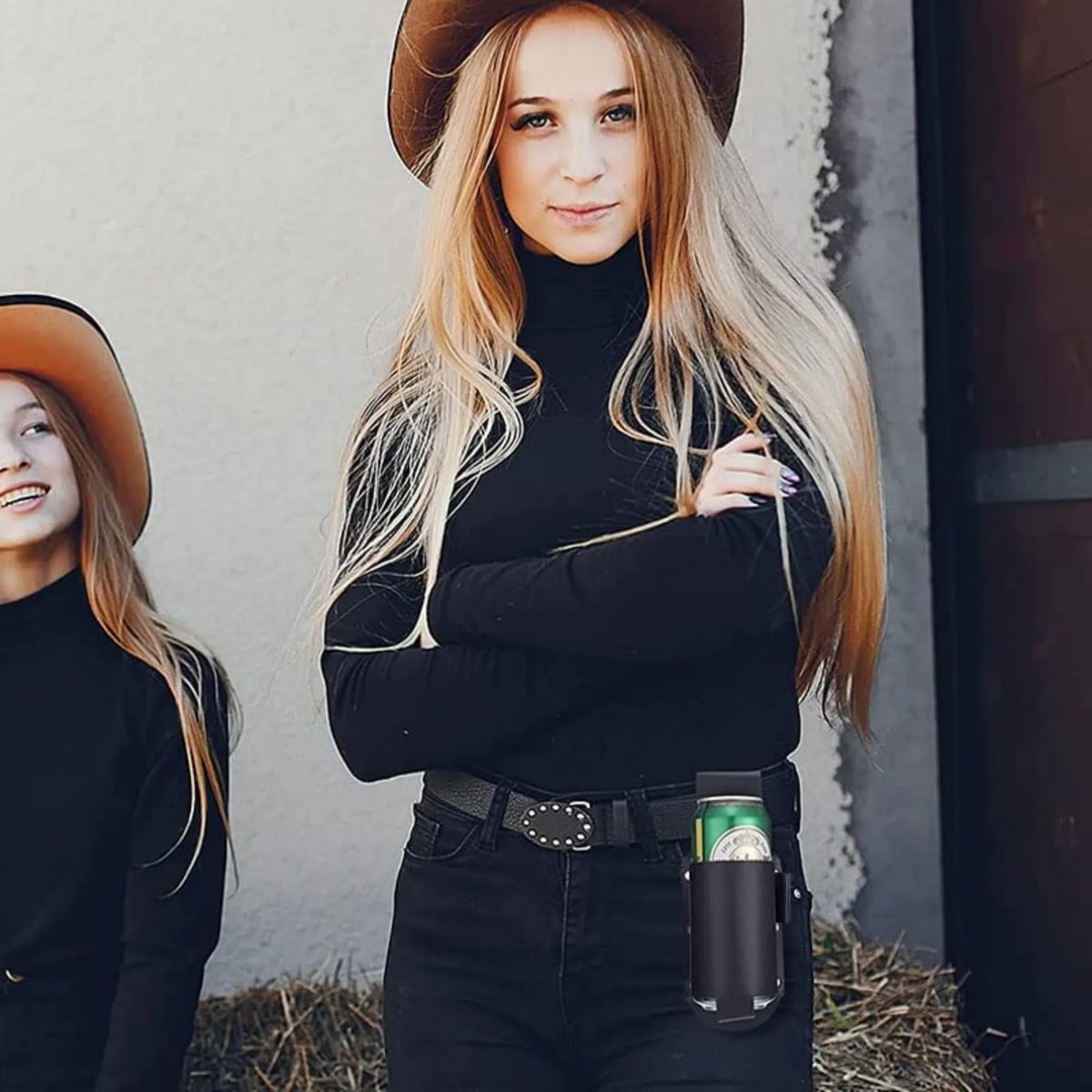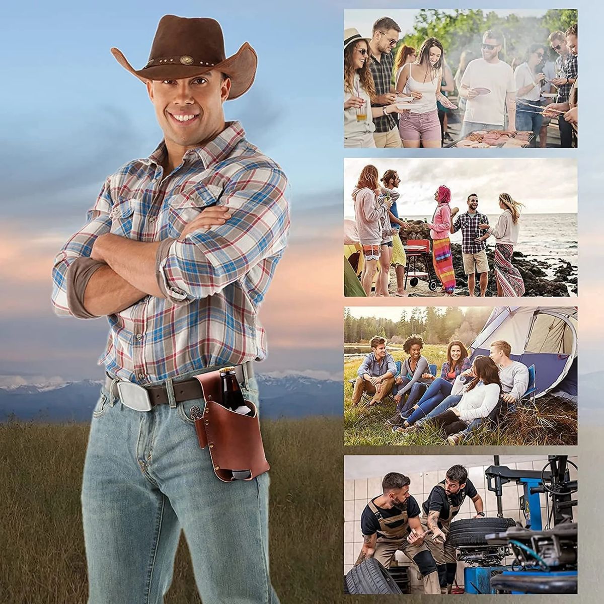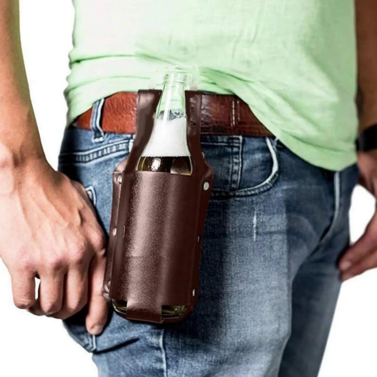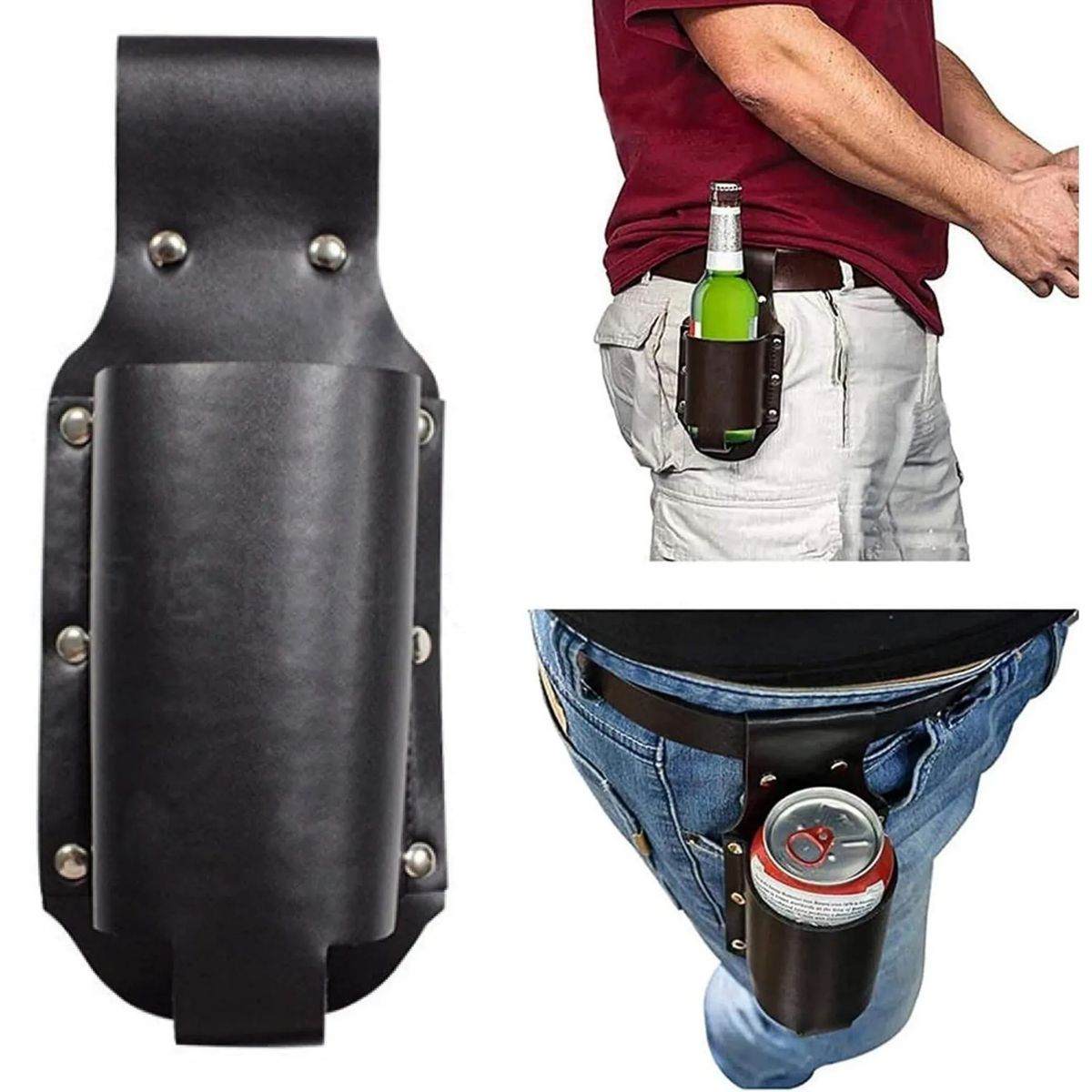 Enjoy hands free convenience with this portable PU leather beer holster. Made from durable waterproof PU leather, it offers a soft touch feel while securely holding your drink at your side. Keep your beverage cool and your hands free at parties, barbecues, picnics, hikes, camping trips, beach days, and outdoor events. Ideal for beer bottles, soda cans, or water bottles. A unique and fun gift for men who love outdoor gatherings or home DIY projects. Comfortable to wear and easy to clean, this holder fits most standard belts for quick access to your favorite drink anytime.
